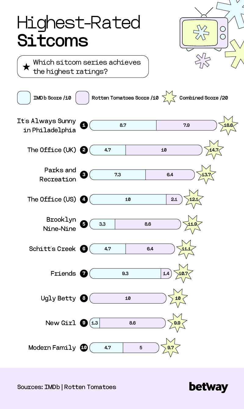 Thanks to the dominance of streaming platforms, viewers are spoilt for choice when choosing which sitcom to binge next. However, as part of their new report, the team at Betway has discovered which sitcoms come out on top for their combined IMDb and Rotten Tomatoes ratings, to help viewers decide which iconic shows need to be added to their binge-list.