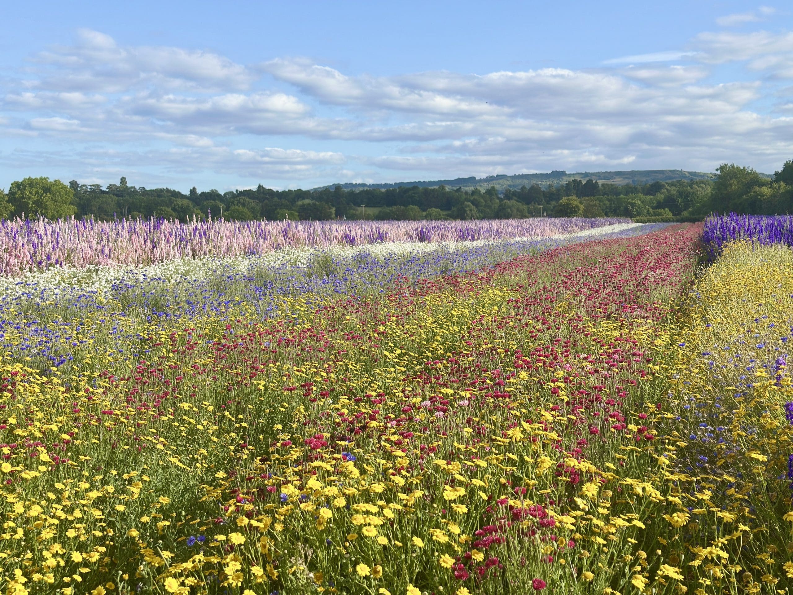 Although the number of traditional tall delphiniums will be reduced this season, the fields will feature a rich mix of cornflowers, poppies, annuals and other complementary blooms. The result will be a vivid patchwork of colours including red, blue, pink, white, purple, orange and yellow, creating an immersive environment ideal for walking, photography and relaxation.