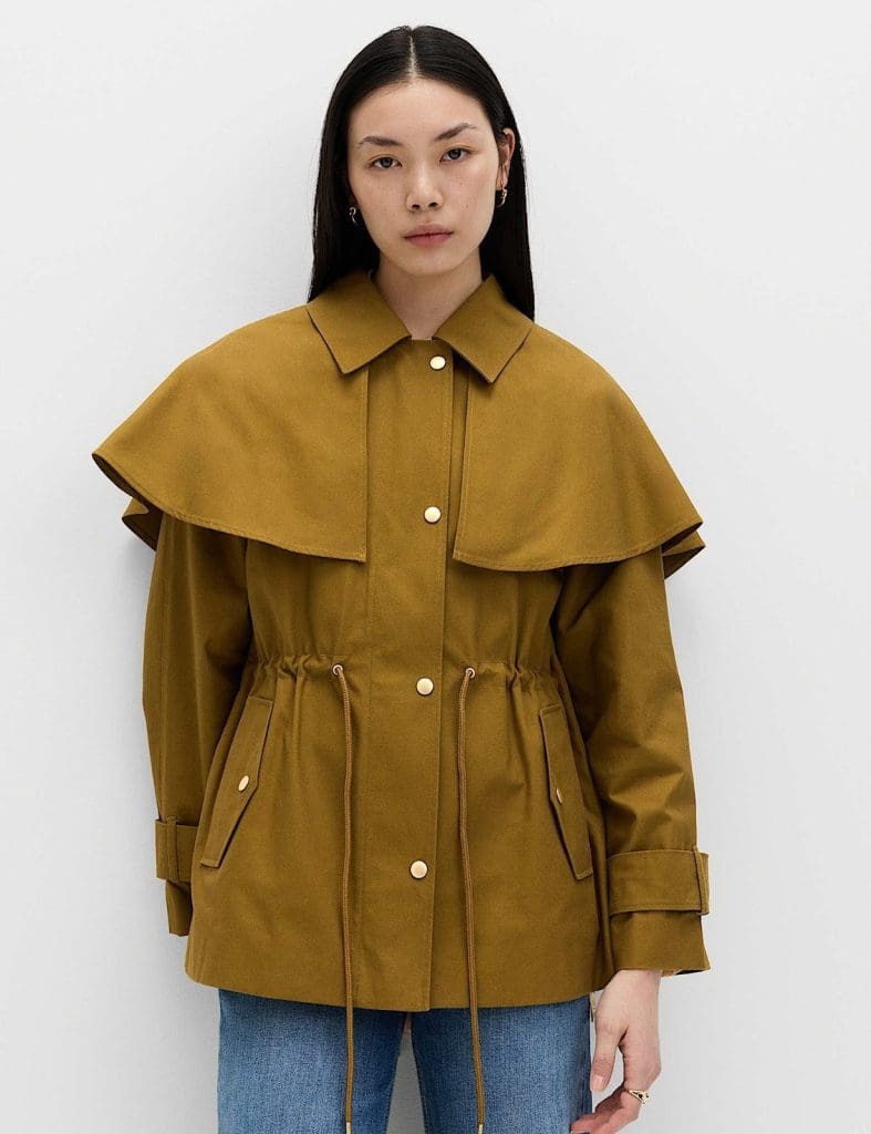 Outerwear is often where M&S truly shines, and the Pure Cotton Waisted Collared Cape Coat is this season’s conversation starter. Already earning a perfect five-star rating from early buyers, this coat combines a modern parka silhouette with a detachable cape collar that gives it an architectural, almost editorial quality.