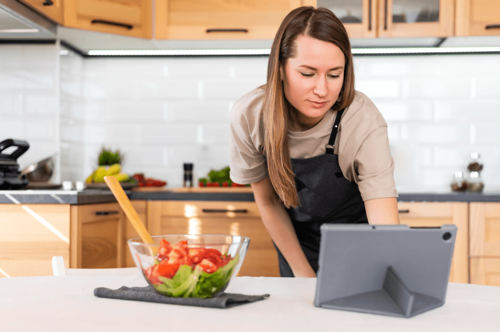 For many home cooks, screens have become practical tools. Video recipes, technique demonstrations, and long-form food stories are easier to follow on a larger display than on a phone balanced near the sink. Having a screen visible while cooking allows people to stay engaged without interrupting the flow of preparation.